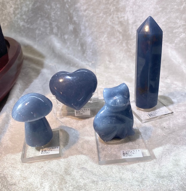 久しぶり入荷のエンジェライトさんはキノコ🍄ハート💙オベリスクに猫ちゃん🐈